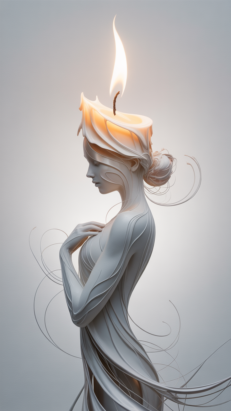 Discover a stunning elegant surreal candle woman phone wallpaper free to download that brings a harmonious blend of art and serenity to your device. This HD background features a slender, flowing sculpture-like female figure with a melting candle head glowing softly, creating a contemplative and ethereal vibe. Perfect as a dark wallpaper for both iPhone and Android phones, it enhances the lockscreen with smooth curves and a calming soft glow. Its minimalist light background contrasts beautifully with the candle’s flame, making it an eye-catching free phone wallpaper that adds elegance and mystique to your screen setup.