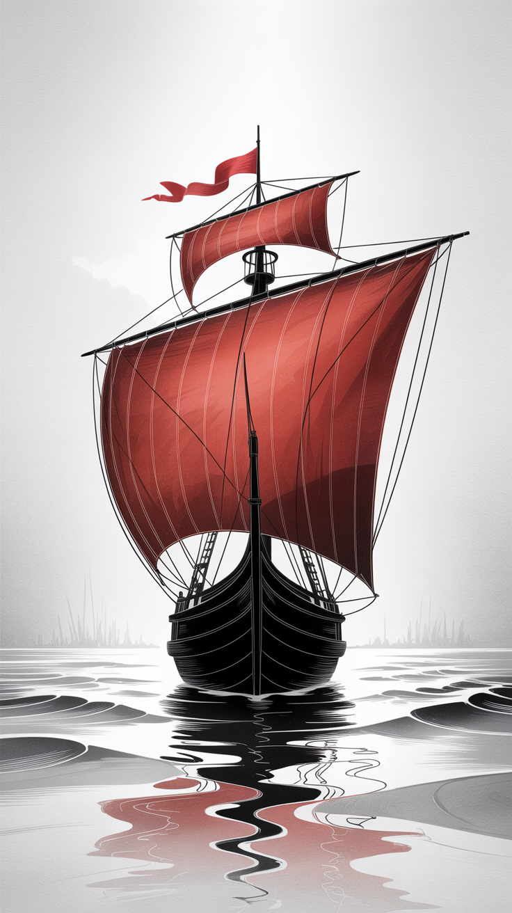 Elevate your phone’s look with this free bold red sails wallpaper, perfect for both iPhone and Android devices. The image features a stylized black ship with large red sails and a red flag, reflected clearly in calm water against a clean white background. This HD background offers a striking contrast that’s ideal for users seeking a minimal yet graphic aesthetic. Its dark wallpaper style with vibrant red highlights creates a dynamic visual impact, making it a perfect lockscreen choice. Compatible with most smartphones, this wallpaper enhances your device with a unique and artistic vibe.