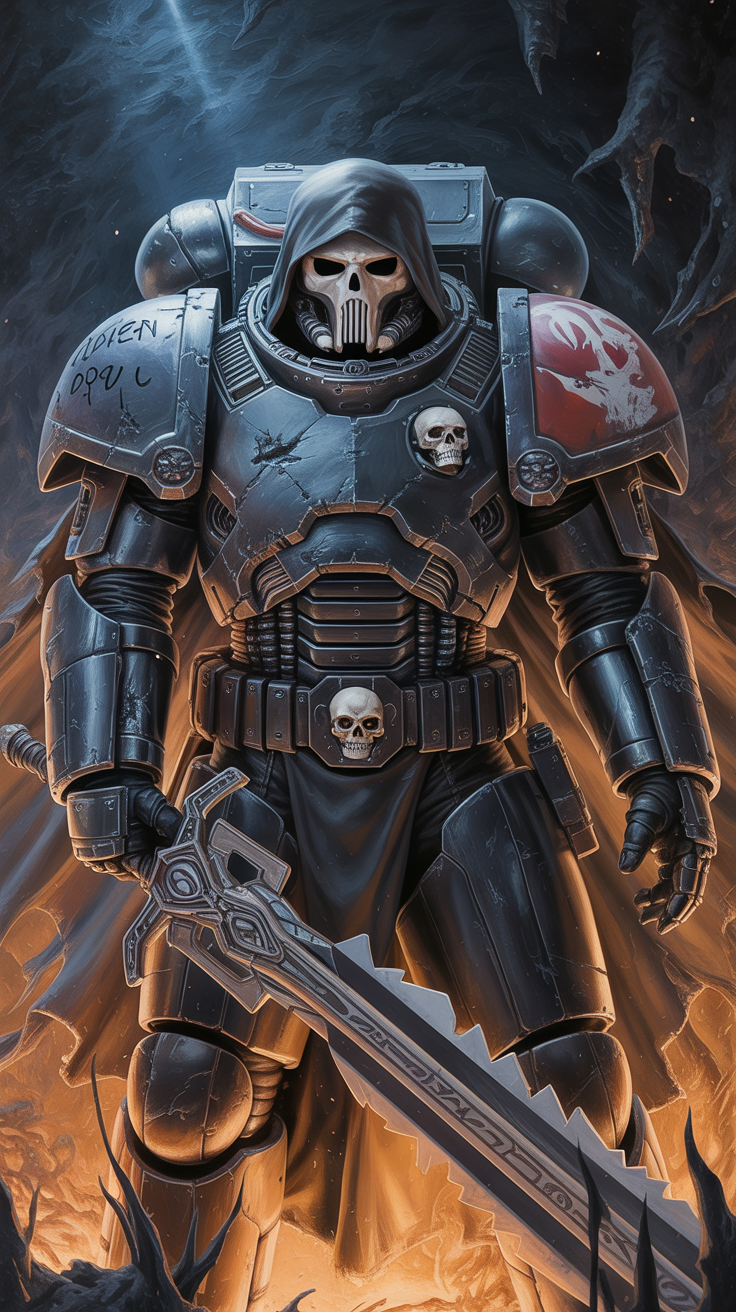 Discover this free dark armored warrior phone wallpaper that perfectly blends a gothic medieval vibe with sci-fi aesthetics. This HD background showcases a heavily armored warrior clad in bulky dark armor adorned with skull motifs, standing amidst fiery flames and smoky, jagged rock formations. The intense and foreboding atmosphere makes it an ideal dark wallpaper for users who want a powerful and intimidating lockscreen. Compatible with both iPhone and Android devices, this high-quality wallpaper adds a dramatic edge to your phone’s appearance. Enhance your mobile device with this striking warrior wallpaper, perfect for fans of dark, gothic, and futuristic themes seeking a bold and detailed background.