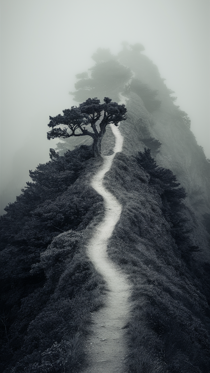 Immerse your device with this free dark misty forest phone wallpaper, perfect for those who love moody and mysterious aesthetics. Featuring a winding path along a steep ridge surrounded by dense trees and thick fog, this HD background creates an ethereal ambiance ideal for both iPhone and Android devices. The grayscale tones add a dramatic flair, making it a stunning dark wallpaper choice that enhances any lockscreen. Compatible with most phone screens, this wallpaper is designed to elevate your device’s look with natural beauty and atmospheric depth.