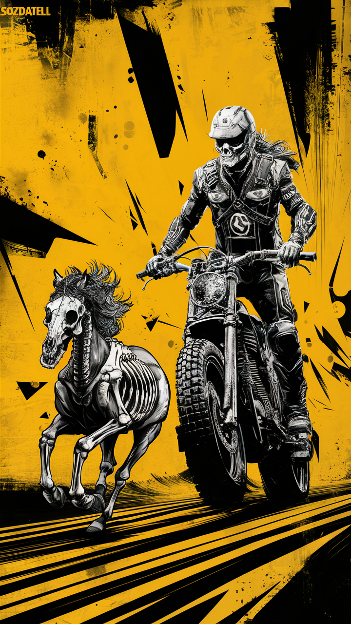 Discover this free dark motorcycle skeleton phone wallpaper designed for those who love edgy, intense aesthetics. Featuring a high-contrast skeleton rider on a dirt bike paired with a dynamic skeletal horse against a vivid yellow background, this phone wallpaper creates a striking HD background perfect for your lockscreen or home screen. The design blends elements of life, death, and speed, delivering a dark yet bold vibe ideal for Android and iPhone devices. Whether you want a unique dark wallpaper or a stand-out HD background, this wallpaper enhances your phone with style and attitude. Compatible with most devices, it’s easy to download and install for free.