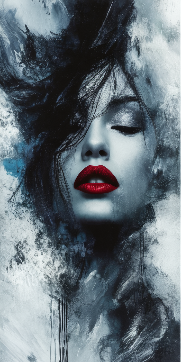 Discover this free dark phone wallpaper showcasing an ethereal portrait of a woman with bold red lips and a mysterious smoky background. This HD background combines sharp details with soft, painterly strokes, creating a moody and atmospheric vibe. The monochromatic palette complements any device, making it perfect for both iPhone and Android phones. Ideal for users seeking a surreal, dreamy aesthetic, this dark wallpaper adds a touch of melancholy beauty to your lockscreen or home screen. Enhance your mobile device with this free high-quality phone wallpaper that balances artistry and serenity effortlessly.