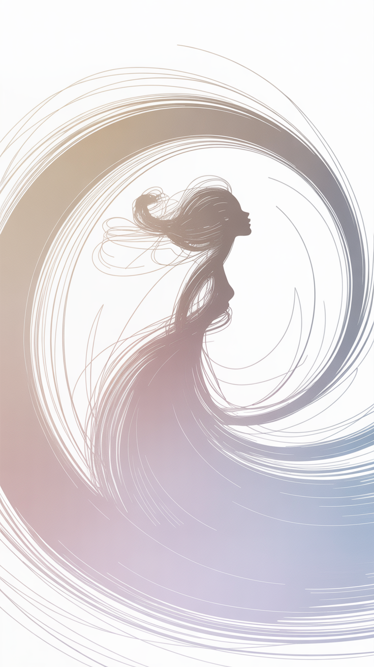 Discover this free elegant artistic woman phone wallpaper designed to bring a calm and ethereal vibe to your device. The minimalist illustration features a woman in profile with delicate flowing lines blending into swirling circular patterns, evoking motion and fluidity. With a soft muted palette of light brown, beige, and pale blue gradients, this HD background enhances the aesthetic appeal of your phone or tablet. Perfectly compatible with both iPhone and Android devices, this dark wallpaper alternative offers a serene yet expressive look. Ideal for those seeking a refined and artistic phone wallpaper that balances subtlety with graceful design.