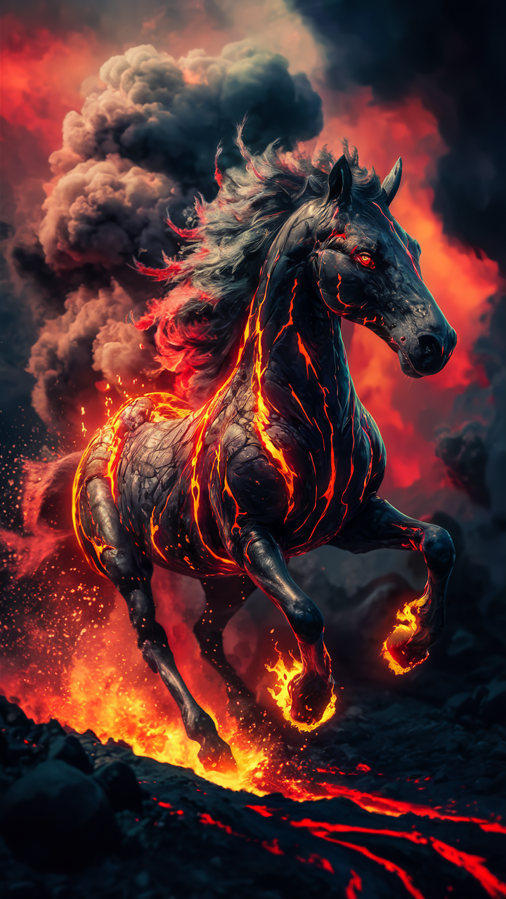 Enhance your phone with this free fiery horse wallpaper that combines the raw power of nature and mythical energy in a striking HD background. This dark wallpaper features a molten lava horse galloping through a volcanic landscape, surrounded by glowing flames and billowing smoke. Perfect for those who love intense, elemental aesthetics, this phone wallpaper brings a supernatural vibe to your device. Optimized for all smartphones including iPhone and Android, it delivers crisp and vibrant visuals that truly stand out on lock screens and home screens alike. Download this stunning wallpaper to give your phone a fiery and dynamic daily look that captures strength and elemental force.