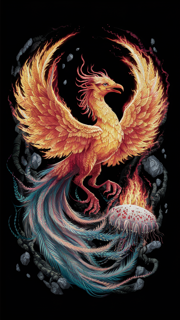 Discover the stunning allure of this free majestic phoenix phone wallpaper, perfect for adding a fiery aesthetic to your device. This HD background showcases a vibrant mythical phoenix rising in shades of orange, red, and yellow against a dark black wallpaper backdrop. Swirling smoky tendrils and an ornate burning egg enrich the design with intense, dynamic details. The high-definition quality ensures sharp imagery compatible with both iPhone and Android phones, enhancing the overall user experience. Whether you prefer a bold dark wallpaper or want a symbolic and fiery look, this phone wallpaper resonates with themes of rebirth and strength, making it a perfect free addition to your lockscreen collection.