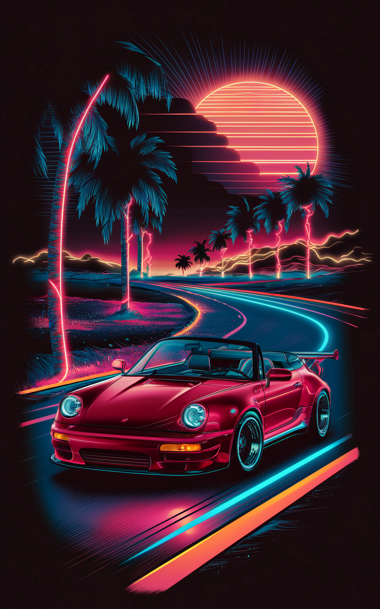 Experience the vibrant energy of this free neon retro futuristic phone wallpaper designed to bring a striking 1980s aesthetic to your device. With a glowing red sports car speeding down a neon-lit winding road lined by palm trees under a huge stylized setting sun, this HD background captures the perfect blend of retro nostalgia and modern digital art. The dark sky enhances the vivid neon colors, making it an ideal dark wallpaper for those who love a dynamic and nightlife-inspired vibe. This phone wallpaper is fully compatible with both iPhone and Android devices, ensuring crisp, high-definition visuals on any screen. Transform your lockscreen with this colorful, futuristic design that embodies speed and style.
