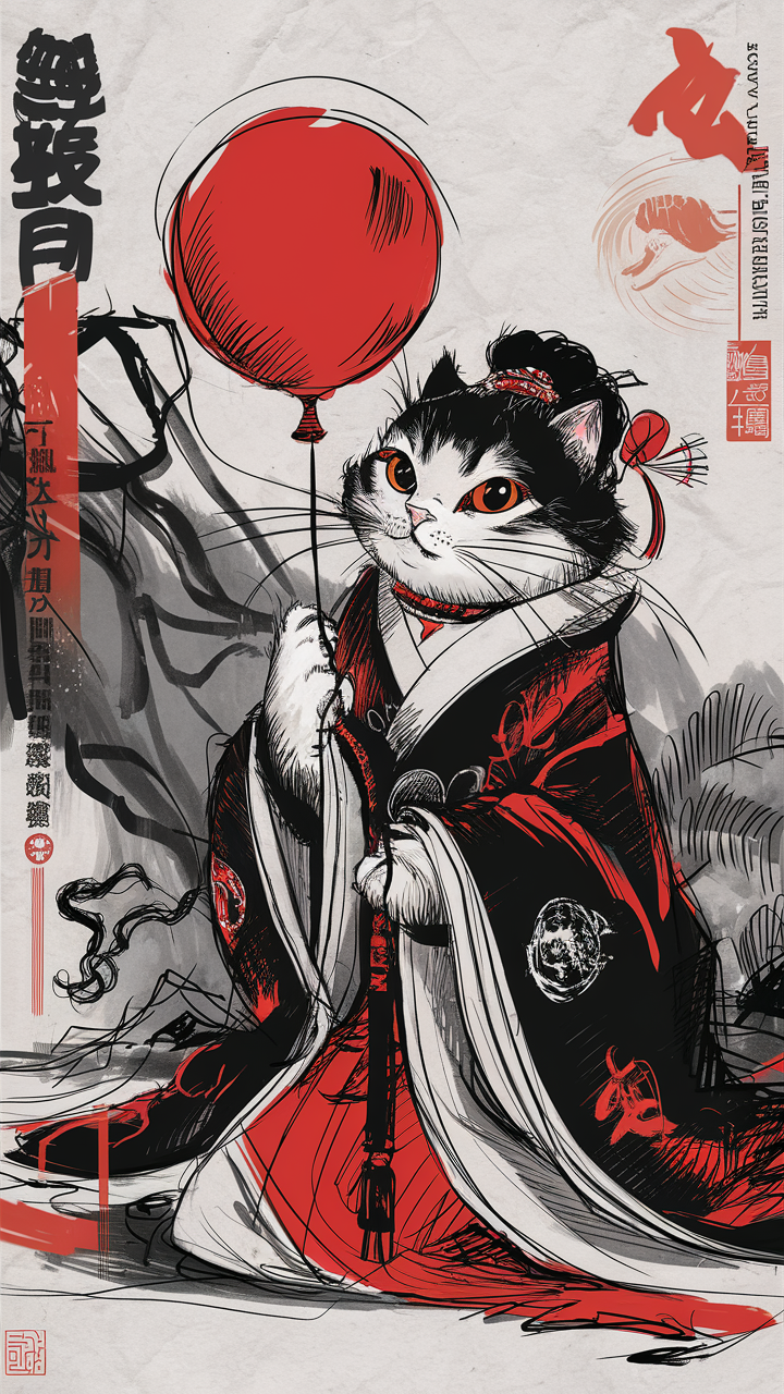 Discover this stunning free phone wallpaper showcasing an artistic East Asian cat illustration designed to bring a unique blend of traditional and modern art to your device screen. The HD background features sketch-like ink lines with bold red and black colors, evoking a dynamic and expressive vibe. Perfect as a dark wallpaper option, it enhances both iPhone and Android phones with its elegant brushstroke elements and calligraphy accents. This free wallpaper combines cultural aesthetics with vibrant visuals to elevate your phone display with a sophisticated and artistic touch.