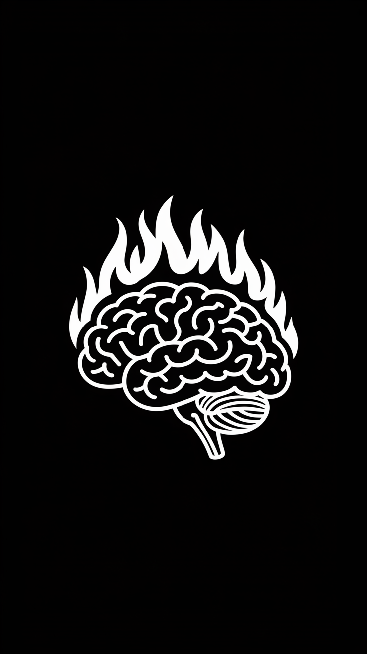 This free phone wallpaper presents a striking black and white illustration of a stylized brain with flames emerging from the top, set against a solid black background. The high contrast and minimalistic design create a bold and modern dark wallpaper perfect for those who appreciate unique HD backgrounds. The image evokes intense thought, creativity, and inspiration, capturing the essence of a brain on fire. Compatible with various phone models including iPhone and Android devices, this wallpaper is optimized to enhance your lock screen with its clean lines and captivating aesthetic. Download this free phone wallpaper to add a touch of mental energy and artistic flair to your device today.