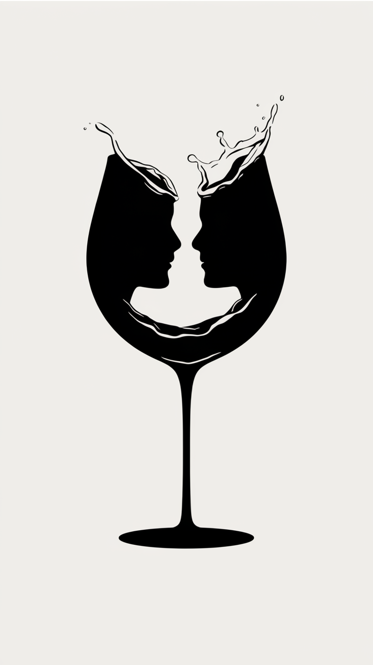 Discover this free phone wallpaper featuring a striking black and white minimalist illustration of a wine glass with two human faces in profile inside the bowl. This HD background offers a unique blend of elegance and intimacy through its creative design and sharp silhouette contrasts. Perfect for users seeking a dark wallpaper with artistic flair, this image fits seamlessly across various devices including iPhone and Android smartphones. Its simple yet sophisticated aesthetic adds depth to your lockscreen or home screen while maintaining a clean, modern vibe.