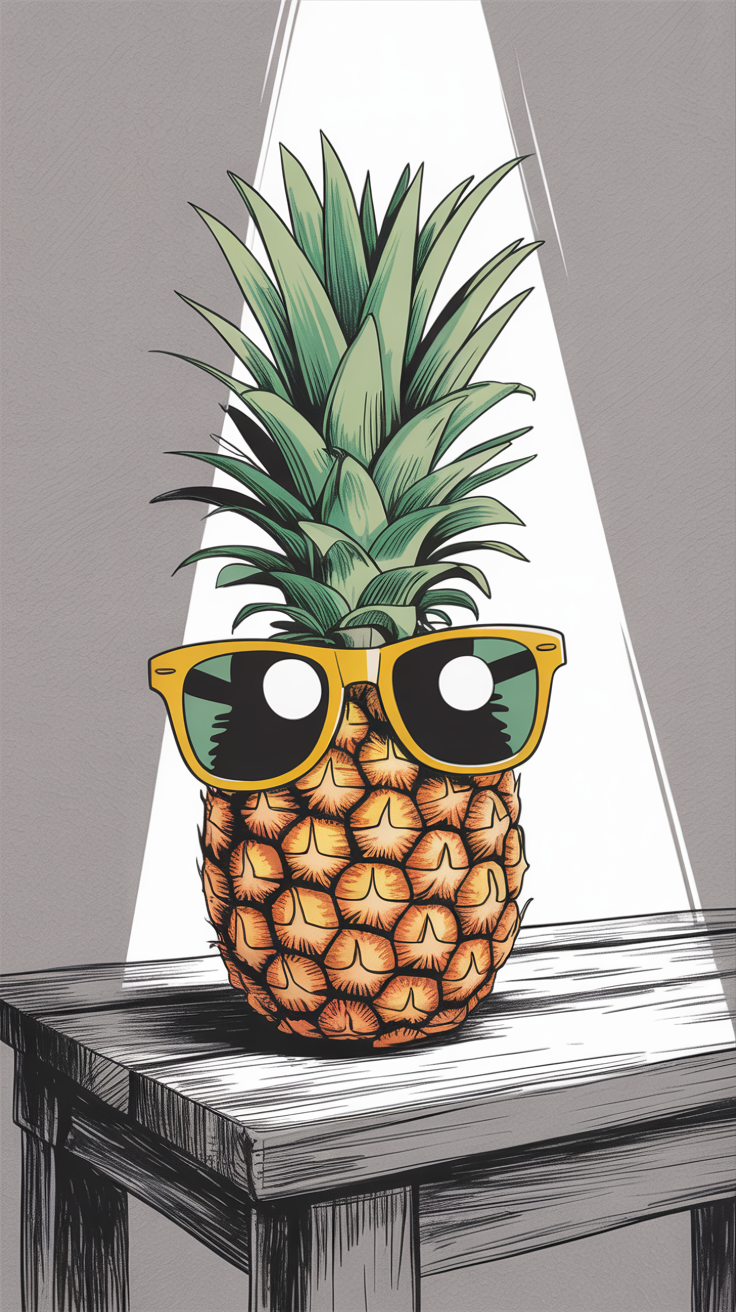 This free phone wallpaper offers a cool, whimsical vibe through a stylized pineapple wearing oversized yellow sunglasses. Set on a wooden table with gray tones and a bright spotlight, this HD background blends natural and modern aesthetics perfectly. Ideal for both iPhone and Android devices, this dark wallpaper emphasizes a playful yet minimalist mood. The simple background enhances the pineapple’s vibrant personality, making it a trendy choice for anyone wanting a unique and artistic lockscreen. Compatible with various screen sizes, this free phone wallpaper brings a fresh, contemporary edge to your device’s home or lockscreen.
