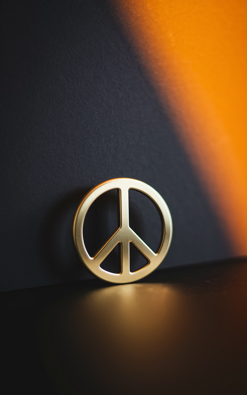Discover a free phone wallpaper that combines minimalism with calm sophistication. This HD background features a golden peace symbol softly illuminated against a dark matte black backdrop, creating a contemplative and modern vibe. The warm orange light highlights the metallic texture, adding depth and a subtle glow to your screen. Perfect for both iPhone and Android devices, this dark wallpaper enhances your phone with an elegant design while maintaining clarity and quality. Ideal for users looking to personalize their lockscreen with a stylish, peaceful aesthetic, this wallpaper brings a serene yet striking look to your device.
