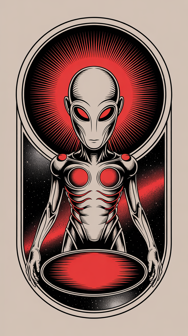 Discover this free phone wallpaper that showcases a striking alien illustration set against a dark cosmic background. This HD background combines deep blacks, beige, and intense red highlights to create a mysterious and powerful vibe ideal for users looking for a dark wallpaper aesthetic. Designed with an oval frame and cosmic elements like glowing stars and halos, this phone wallpaper is compatible with a wide range of devices including iPhone and Android smartphones. Whether you prefer a moody lockscreen or want a unique, otherworldly theme, this free HD phone wallpaper enhances your device with its visually intense and futuristic look.