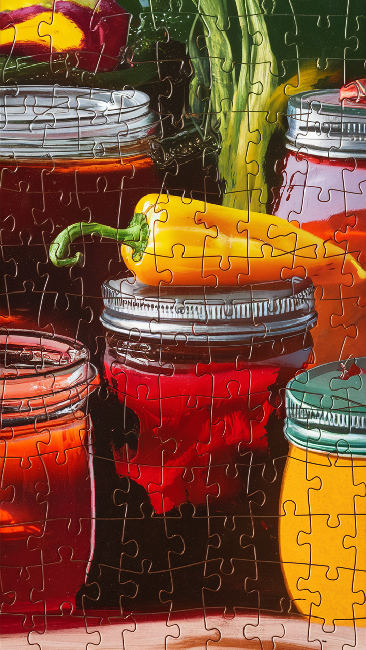 This free phone wallpaper showcases an HD background of a vibrant jigsaw puzzle featuring glass jars filled with colorful preserves. The bright reds, greens, yellows, and oranges create a fresh and lively aesthetic perfect for those looking for a dark wallpaper with pops of color. The close-up view highlights puzzle pieces and intricate details, adding texture and depth to your phone’s lockscreen or homescreen. Compatible with all iPhone and Android devices, this wallpaper offers a unique and artistic vibe that stands out in any wallpaper collection. Download now for a visually striking and colorful wallpaper experience.