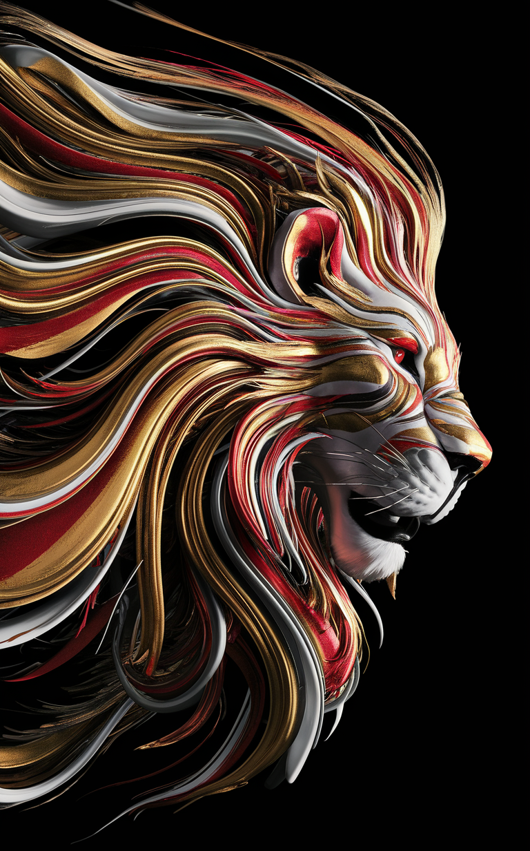 This free phone wallpaper features a stunning HD background of a lion’s head rendered in an artistic, stylized profile. The dark wallpaper’s solid black background enhances the vibrant metallic ribbons of gold, red, white, and black that make up the lion’s flowing mane. The glossy, reflective texture adds a dynamic and modern aesthetic, perfect for those seeking a bold and fierce lockscreen look. This wallpaper is fully compatible with all phone models including iPhone and Android devices, ensuring a crisp and high-quality display. Ideal for users looking for a dark, dramatic wallpaper that combines abstract art with realism, this image delivers a powerful visual impact for your phone’s lockscreen or home screen.