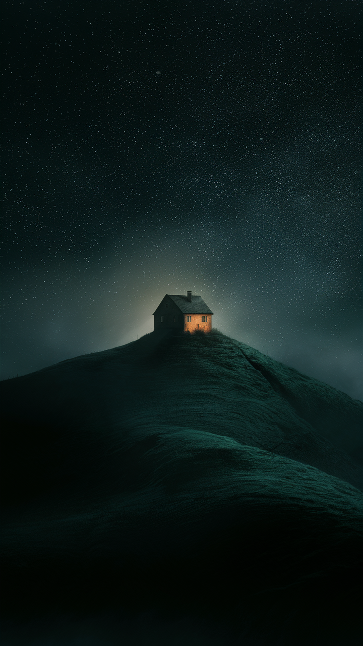 Discover this stunning free phone wallpaper showcasing a solitary house perched atop a gently sloping hill at night. The warm glow from the house contrasts beautifully with the dark, starry sky, creating a calming and contemplative aesthetic. Perfect as a dark wallpaper, this HD background enhances your phone with a serene vibe ideal for anyone seeking a peaceful lockscreen. Compatible with most smartphones, including iPhone and Android devices, this image brings a cozy yet tranquil atmosphere to your phone. Elevate your device’s look with this high-quality free wallpaper designed to soothe and inspire.