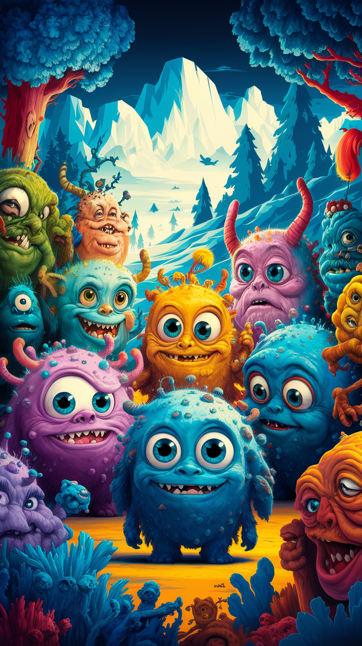 Discover this free phone wallpaper lockscreen showcasing a vibrant group of colorful cartoon monsters set in a whimsical fantasy forest. Featuring expressive and quirky creatures with various shapes and colors, this playful wallpaper creates a joyful and imaginative atmosphere for your phone. Perfect for anyone looking to add a fun and unique lockscreen to their device, this free download brightens up your phone with a fantasy vibe suitable for both iPhone and Android users.