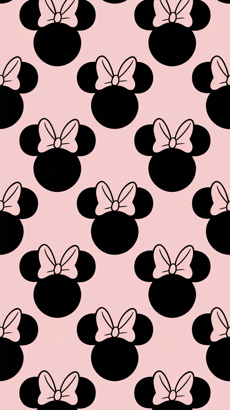 Enhance your phone with this free phone wallpaper lockscreen featuring a charming repeated Minnie Mouse silhouette pattern. The design showcases a simple yet adorable black Minnie Mouse head with a pink bow on a vibrant pink background. Perfect for fans looking for a cute and recognizable lockscreen wallpaper, it suits both iPhone and Android devices. Download this free wallpaper now to personalize your phone with style and character.