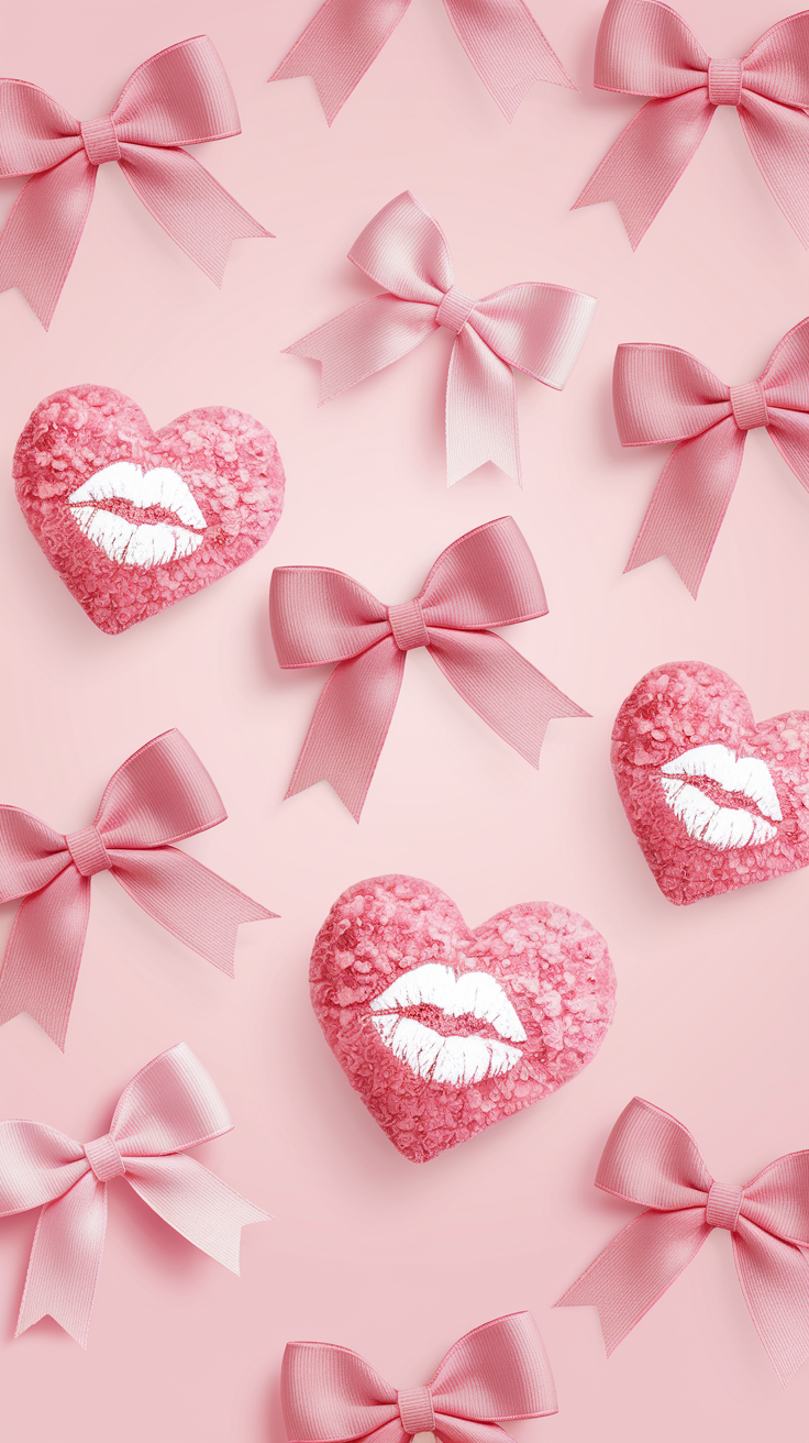 Discover this free phone wallpaper lockscreen featuring a charming pattern of pink bows and heart-shaped objects with white lip prints. Perfect for anyone who loves a soft, feminine, and playful aesthetic. This wallpaper is designed to enhance your phone’s lockscreen with various shades of pink, adding a romantic and affectionate vibe. Ideal for iPhone and Android users looking to personalize their devices with a unique, stylish background.