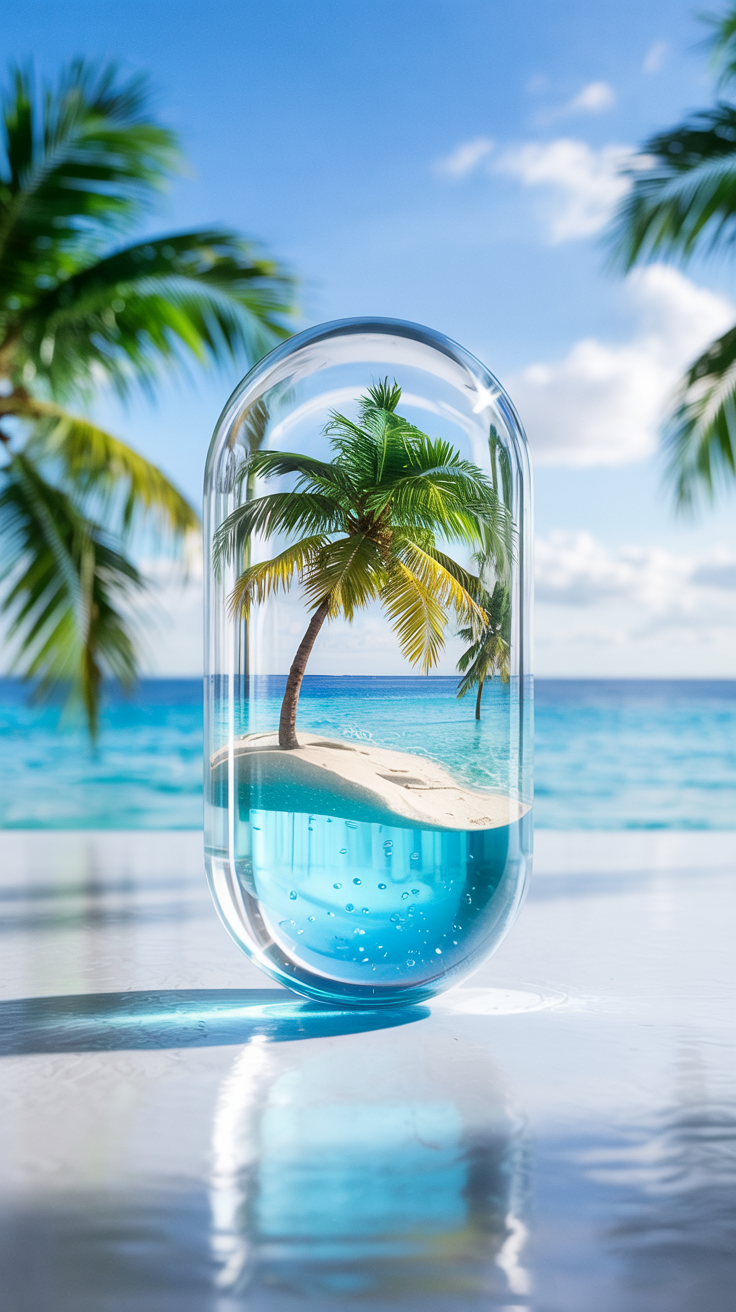 Discover this free phone wallpaper lockscreen featuring a surreal tropical island capsule design. Perfect for those who love unique and visually striking phone backgrounds, this wallpaper combines natural beach elements with an imaginative twist. Ideal for enhancing your phone or tablet lockscreen, it offers a calm, tropical vibe that brings a touch of paradise to your device. Download this free wallpaper now and elevate your phone’s look with a creative and eye-catching lockscreen.