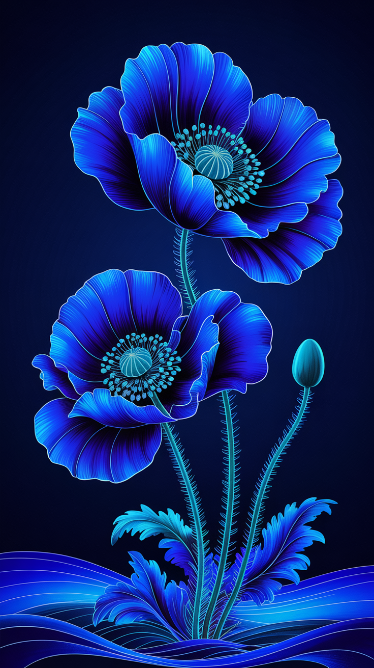 Discover this stunning free phone wallpaper lockscreen featuring vibrant blue flowers with intricate details and luminous gradients. This digital artwork highlights two fully bloomed flowers and a delicate bud set against a dark gradient background, creating a sleek and modern look. Perfect for enhancing your phone’s aesthetic, this free lockscreen wallpaper is ideal for both iPhone and Android devices. Download now to add a touch of ethereal beauty to your phone.