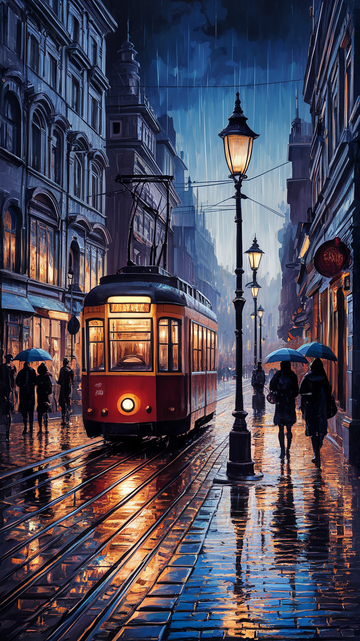Discover this stunning free phone wallpaper capturing a rainy evening city street featuring a vintage red tram. The wet pavement creates vibrant colorful reflections of street lamps and tram lights, enhancing the romantic and nostalgic vibe. This HD background is perfect for those who love atmospheric dark wallpapers with warm lighting contrasts. Compatible with both iPhone and Android devices, this free wallpaper brings an urban vintage aesthetic to your lockscreen or home screen. Ideal for anyone looking to add a cozy, reflective mood to their phone display while enjoying a high-quality, artistic background.