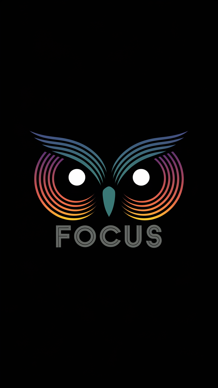 This free phone wallpaper showcases a stylized owl face on a deep black background, creating a striking dark wallpaper perfect for those who love modern and sleek designs. The owl’s eyes are highlighted with white circles surrounded by gradient feathers transitioning from purple to orange and yellow, adding a vibrant pop of color. Blue and teal feather tufts add extra depth to the minimalist design. The word FOCUS at the bottom reinforces concentration vibes. Compatible with both iPhone and Android devices, this HD background is ideal for users looking for a clean and abstract lockscreen aesthetic that emphasizes sharpness and attentiveness. Bright colors on a dark theme offer great visibility and style for everyday use.