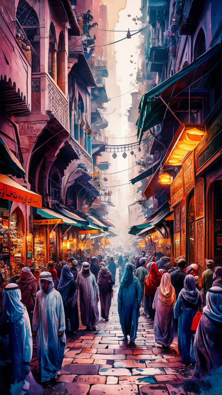 Experience the lively charm of a vibrant Middle Eastern street market with this free phone wallpaper. The image captures a bustling narrow street lined with traditional shops under glowing lanterns, setting a cozy and inviting ambiance. This HD background highlights the rich cultural heritage seen in the ornate architecture, cobblestone pathways, and people dressed in traditional robes and turbans. Perfectly compatible with most smartphones, this dark wallpaper blends warm tones and intricate details to create an immersive and visually appealing lockscreen or home screen image. Ideal for those who appreciate cultural aesthetics and exotic street scenes, this free wallpaper enhances your device with its authentic and vibrant vibe.