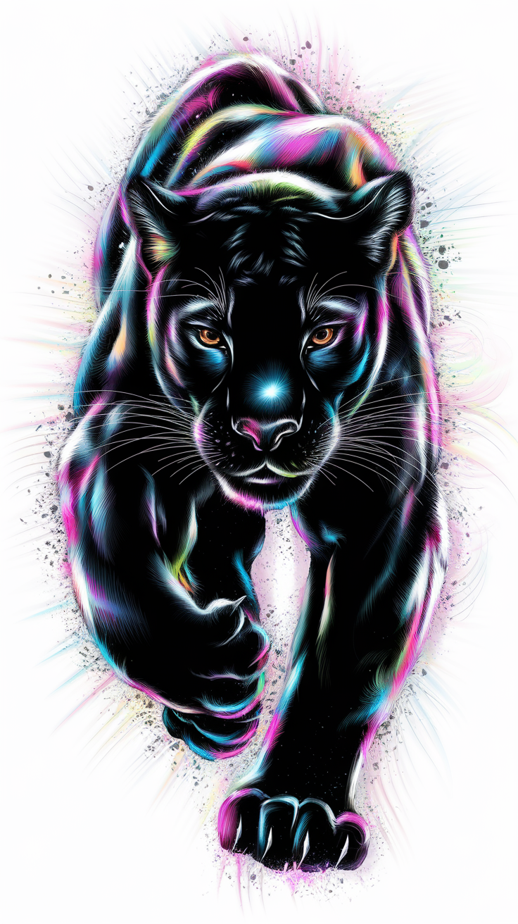 Discover this stunning free phone wallpaper showcasing a vibrant black panther in a powerful forward-pouncing pose. Featuring glowing neon accents in pink, blue, purple, and yellow, this dark wallpaper combines realism with a futuristic electric glow effect for an energetic vibe. The white background enhances the neon colors, making the panther stand out brilliantly. Ideal as an HD background, this wallpaper is fully compatible with all phone devices including iPhone and Android models. Add dynamic style and intensity to your phone screen with this captivating digital artwork that brings both elegance and energy to your lockscreen.
