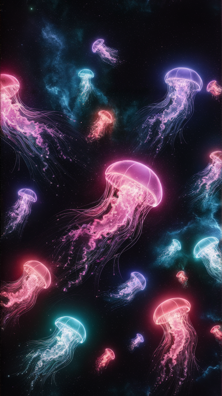 This free phone wallpaper features a stunning display of vibrant neon jellyfish drifting in a dark, space-inspired background. The glow of pink, blue, and purple hues creates an ethereal vibe that perfectly blends marine life with cosmic elements. Designed in high definition, this HD background brings an otherworldly aesthetic to your lockscreen, making it ideal for those who love dark wallpapers with a surreal twist. Compatible with most smartphones including iPhone and Android devices, this wallpaper elevates your phone’s look while keeping it visually captivating and unique. Perfect for users seeking a blend of artistic and modern phone backgrounds.