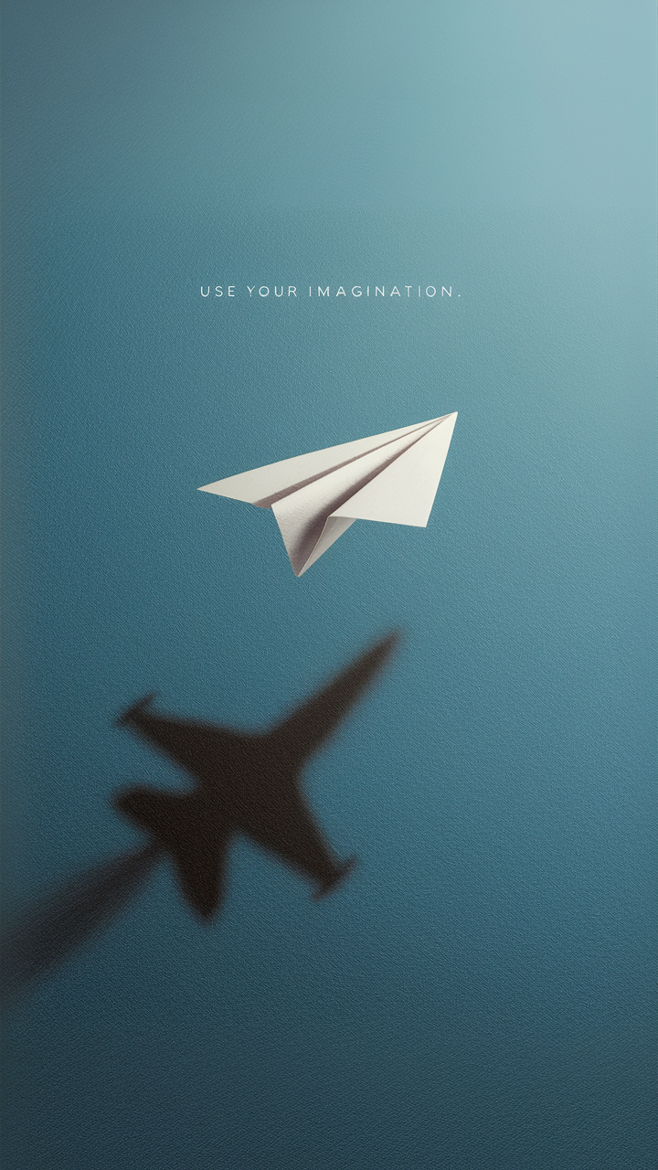 Discover this free phone wallpaper featuring a white paper airplane soaring through a vivid blue sky background. The design’s imaginative vibe emphasizes creativity by showing the paper airplane’s shadow transforming into a jet fighter plane, inspiring users to think beyond the ordinary. This HD background is perfect for anyone looking for a dark wallpaper with a bright and uplifting twist. Compatible with most smartphones including iPhone and Android devices, this lockscreen wallpaper adds a fresh, motivational aesthetic to your phone. Elevate your phone’s visual appeal today with this unique and free HD wallpaper designed to spark your imagination.