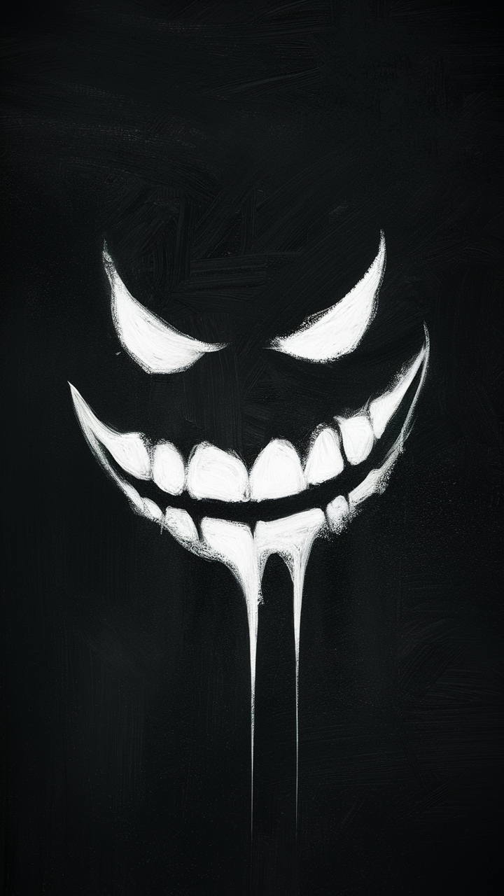 Discover this free sinister face phone wallpaper that brings an eerie and intimidating vibe to your device. The stylized white face with menacing slanted eyes and a toothy grin stands out sharply against the black dark wallpaper, creating a striking contrast perfect for dark wallpaper enthusiasts. The dripping paint effect adds an artistic edge, enhancing the mysterious aesthetic. This HD background is fully compatible with most smartphones, including iPhone and Android devices, ensuring a perfect fit and crisp display. Elevate your phone’s lockscreen with this chilling and visually stunning wallpaper, ideal for users who love bold and unique phone backgrounds.