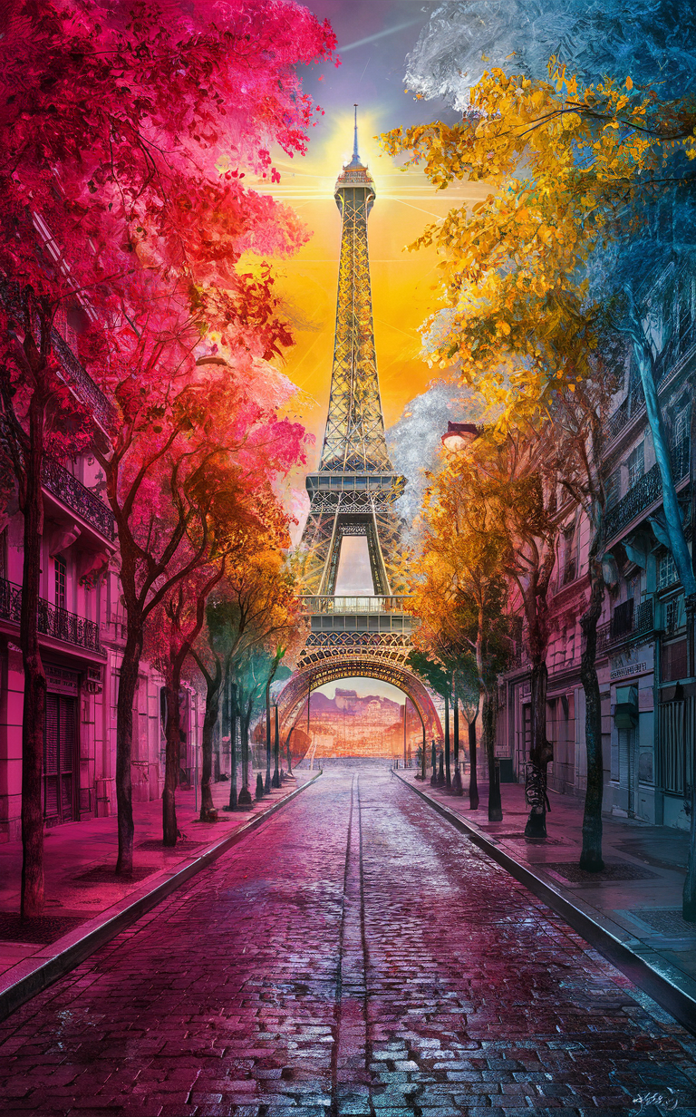 Enhance your phone’s look with this free stunning Paris Eiffel Tower phone wallpaper. This HD background captures a surreal and artistic vibe featuring vibrant pink, magenta, golden yellow, and blue foliage, perfectly blending with the classic Parisian architecture and a dreamy sky. Ideal for both iPhone and Android devices, this dark wallpaper emphasizes vivid colors enhanced by reflections on a wet cobblestone street. Its unique, high-definition design adds a magical ambiance perfect for users seeking a stylish and imaginative lockscreen or home screen background. Download this free phone wallpaper to bring a touch of Parisian charm and elegance to your device today.
