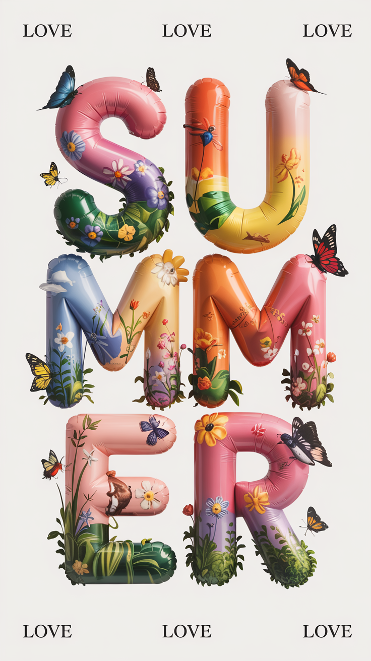 Brighten up your phone screen with this free summer phone wallpaper, showcasing large balloon-style letters spelling SUMMER in vibrant floral designs. Each letter is adorned with colorful flowers, lush greenery, and butterflies that evoke a cheerful and natural vibe perfect for the warmer months. The white background enhances the vivid colors, making this HD background an eye-catching addition to your device. Compatible with both iPhone and Android devices, this dark wallpaper alternative embraces bright and lively aesthetics for users seeking a refreshing summer look. Download now to give your lockscreen a stunning seasonal upgrade with this nature-inspired phone wallpaper.