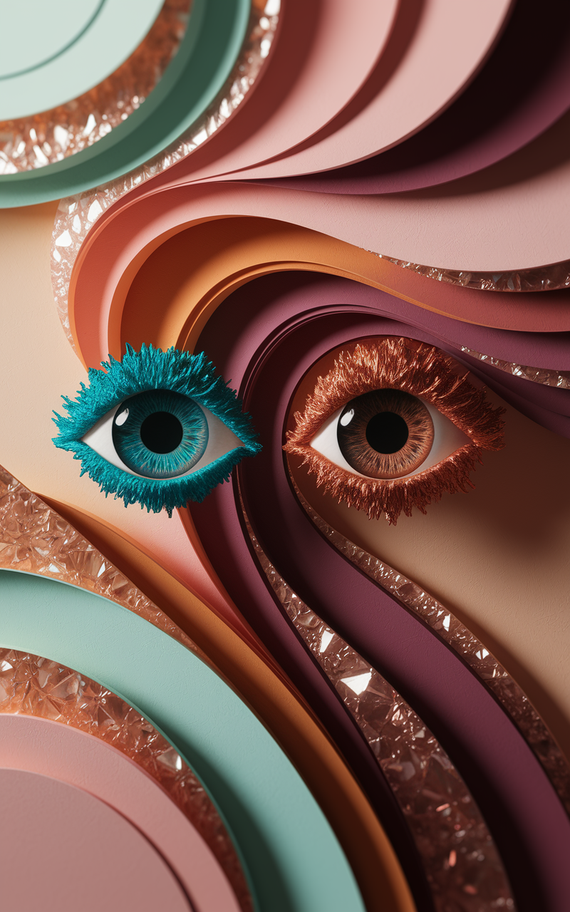 Discover this free surreal abstract phone wallpaper perfect for adding an artistic vibe to your device. This HD background showcases two detailed human-like eyes set against flowing, layered shapes in warm peach, pink, orange, maroon, and cool light teal tones. The unique crystalline textures add a sparkling effect, combining organic and geometric elements for a visually striking aesthetic. Ideal for both iPhone and Android users, this dark wallpaper blends vibrant colors with subtle textures, making it a stunning choice to enhance your lockscreen or home screen. Elevate your phone’s look with this artistic and free wallpaper option compatible with all major smartphone devices.