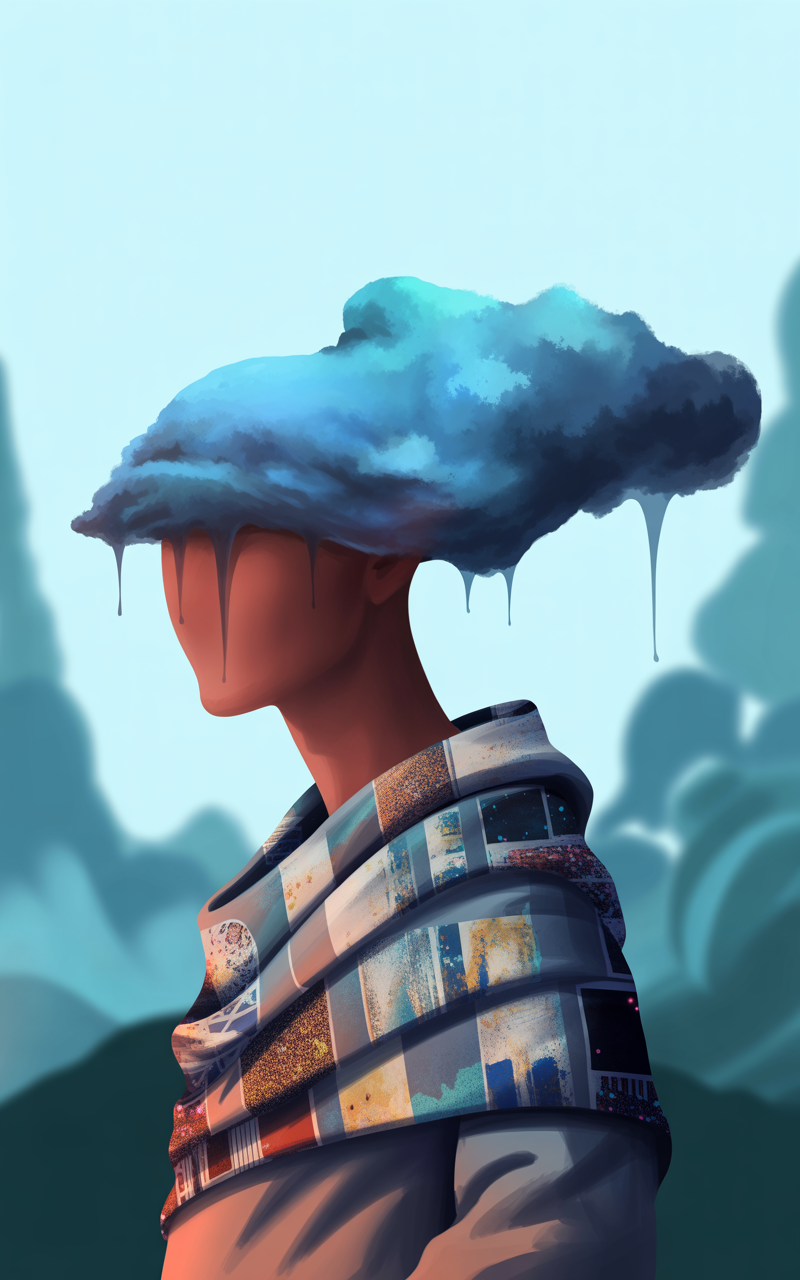Enhance your phone screen with this free surreal phone wallpaper that features a striking blue cloud formation dripping from the head of a person wearing a colorful patterned garment. This HD background blends dreamy blue-green abstract shapes with warm earthy tones on the face, creating a perfect balance of surreal and artistic vibes. Ideal for both iPhone and Android devices, this dark wallpaper adds a unique and imaginative aesthetic to your lockscreen. Whether you want a creative digital art wallpaper or an abstract phone background, this free wallpaper offers a visually stunning option to personalize your device with a high-quality, vibrant image.