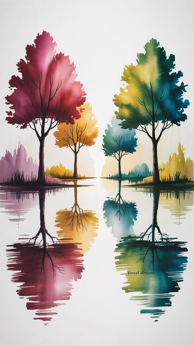 Enhance your phone screen with this free vibrant colorful trees phone wallpaper that brings a dreamy and artistic vibe to your device. The image features a stunning gradient of trees in reds, purples, oranges, yellows, greens, and teals, all reflected beautifully on a calm water surface. Its HD background quality ensures crisp and clear visuals perfect for both iPhone and Android devices. The dark branches and smooth painted reflections create an abstract yet soothing effect, making this wallpaper an ideal choice for users who love nature-inspired and imaginative phone backgrounds. Compatible with most smartphones, it adds a fresh and colorful mood to your lockscreen or homescreen.