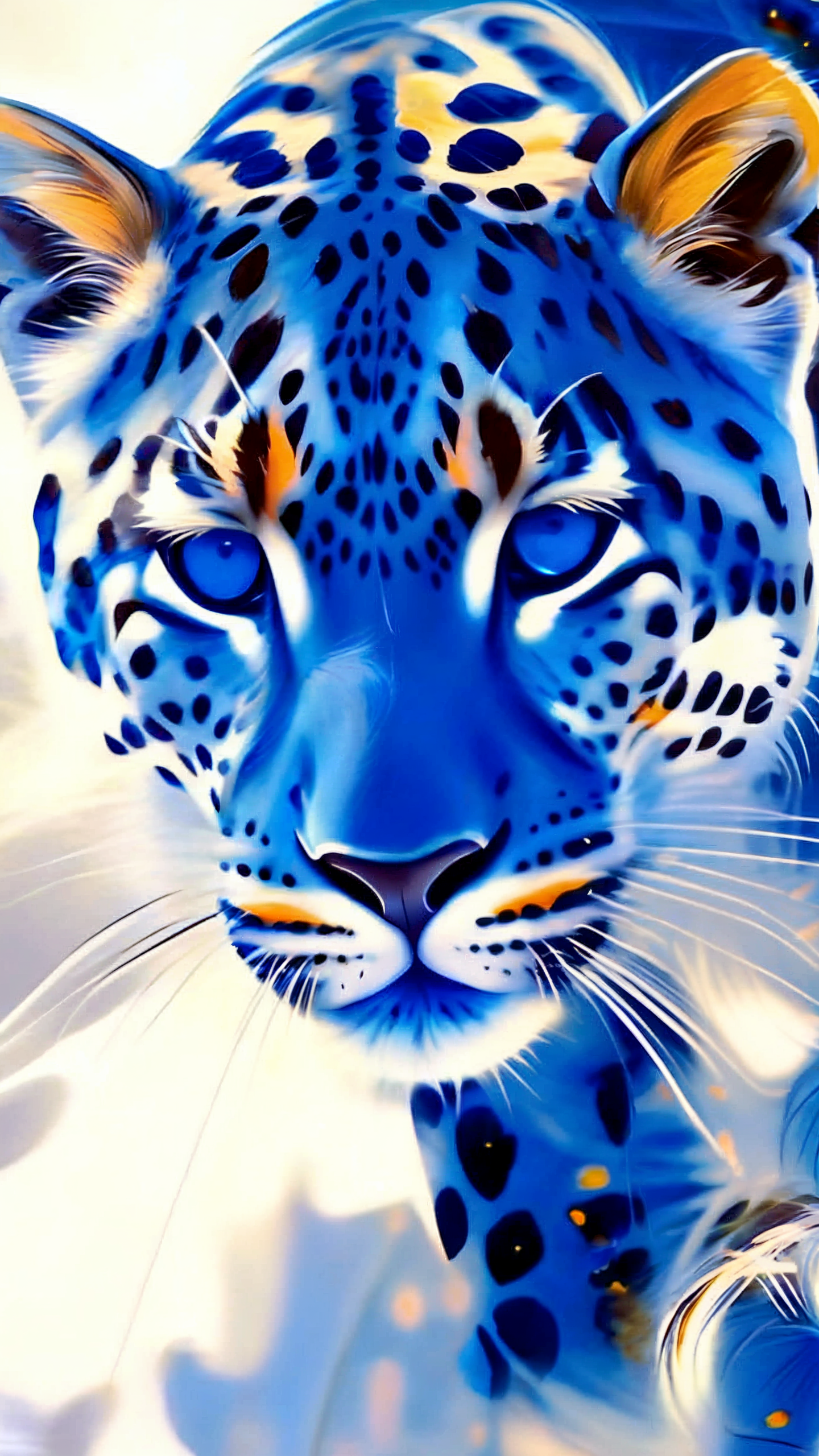 Discover this free vibrant leopard phone wallpaper designed as a stunning HD background that brings your device to life. Featuring a close-up of a leopard’s face in vivid blues and contrasting black spots, this dark wallpaper adds an artistic and surreal vibe to your lockscreen. The subtle orange and white highlights enhance the intense gaze, creating a captivating aesthetic perfect for any phone. Compatible with both iPhone and Android devices, this smooth and fluid digital artwork elevates your phone’s appearance with a glowing, modern look. Perfect for users seeking a unique and eye-catching phone wallpaper without sacrificing quality or style.