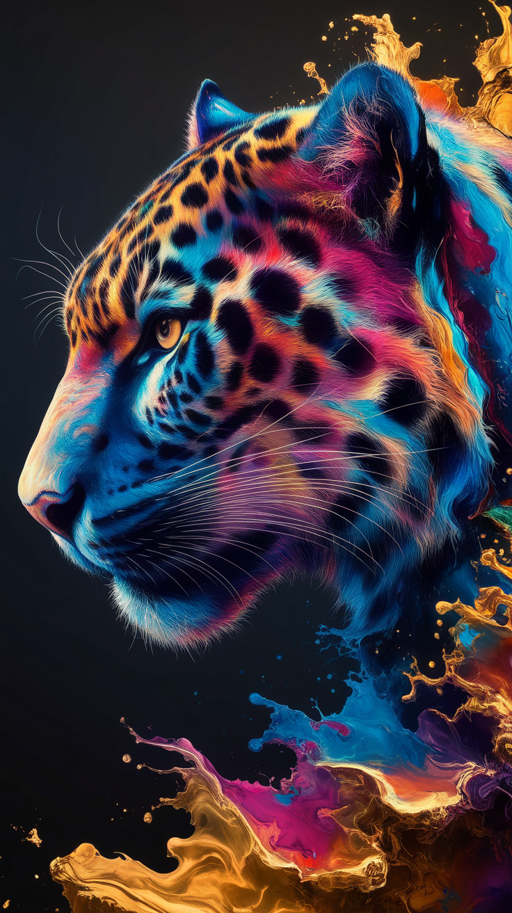 Discover this free vibrant neon leopard phone wallpaper that combines stunning realism with abstract colorful art. Featuring a detailed close-up side profile of a leopard, the image glows with bright blues, pinks, purples, oranges, and yellows contrasted against a dark wallpaper background. This HD background creates a surreal and striking look, ideal for enhancing your phone’s lockscreen or home screen. Designed to fit both iPhone and Android devices perfectly, this dark wallpaper adds a bold, artistic aesthetic to your phone while keeping your display sharp and vivid. Download now to make your phone stand out with this colorful and dynamic wallpaper.