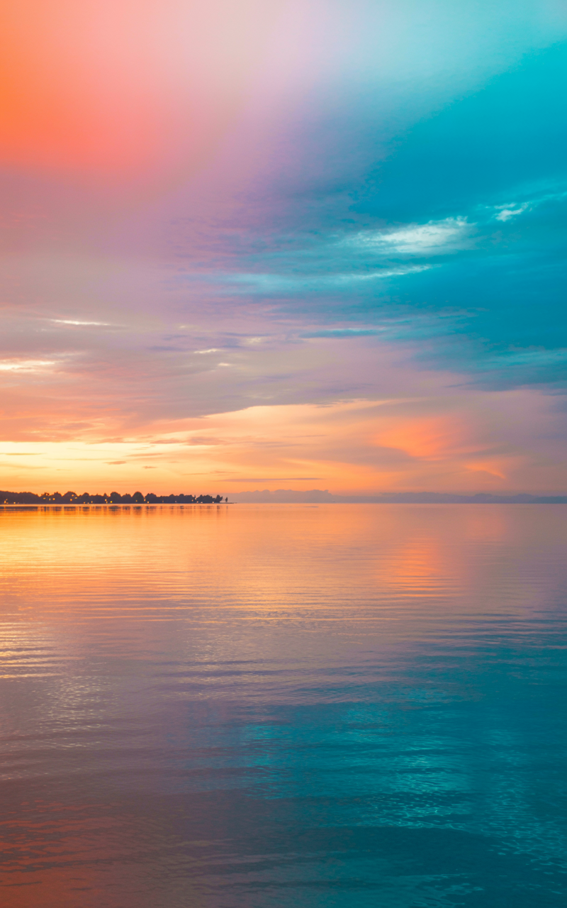 Discover the serene sunset phone wallpaper lockscreen free to download, perfect for adding a calming and peaceful vibe to your device. This beautiful wallpaper features a stunning gradient sky blending soft pinks, oranges, blues, and teals over calm reflective water. The silhouette of a tree-lined shore adds depth, creating a harmonious scene ideal for any phone lockscreen. Easily compatible with both iPhone and Android devices, this free wallpaper enhances your phone with natural beauty and tranquility.